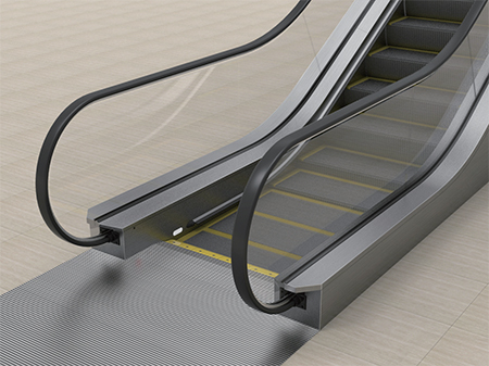 踏板位于裙板下方運行,消除踏板與裙板的側(cè)向擠壓縫隙,使用更安全